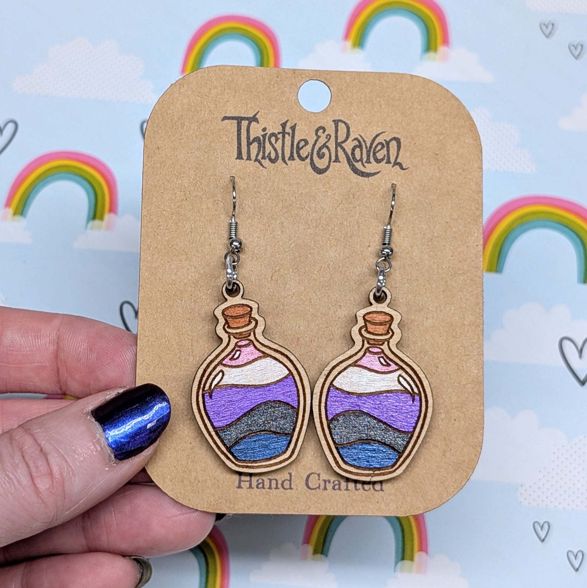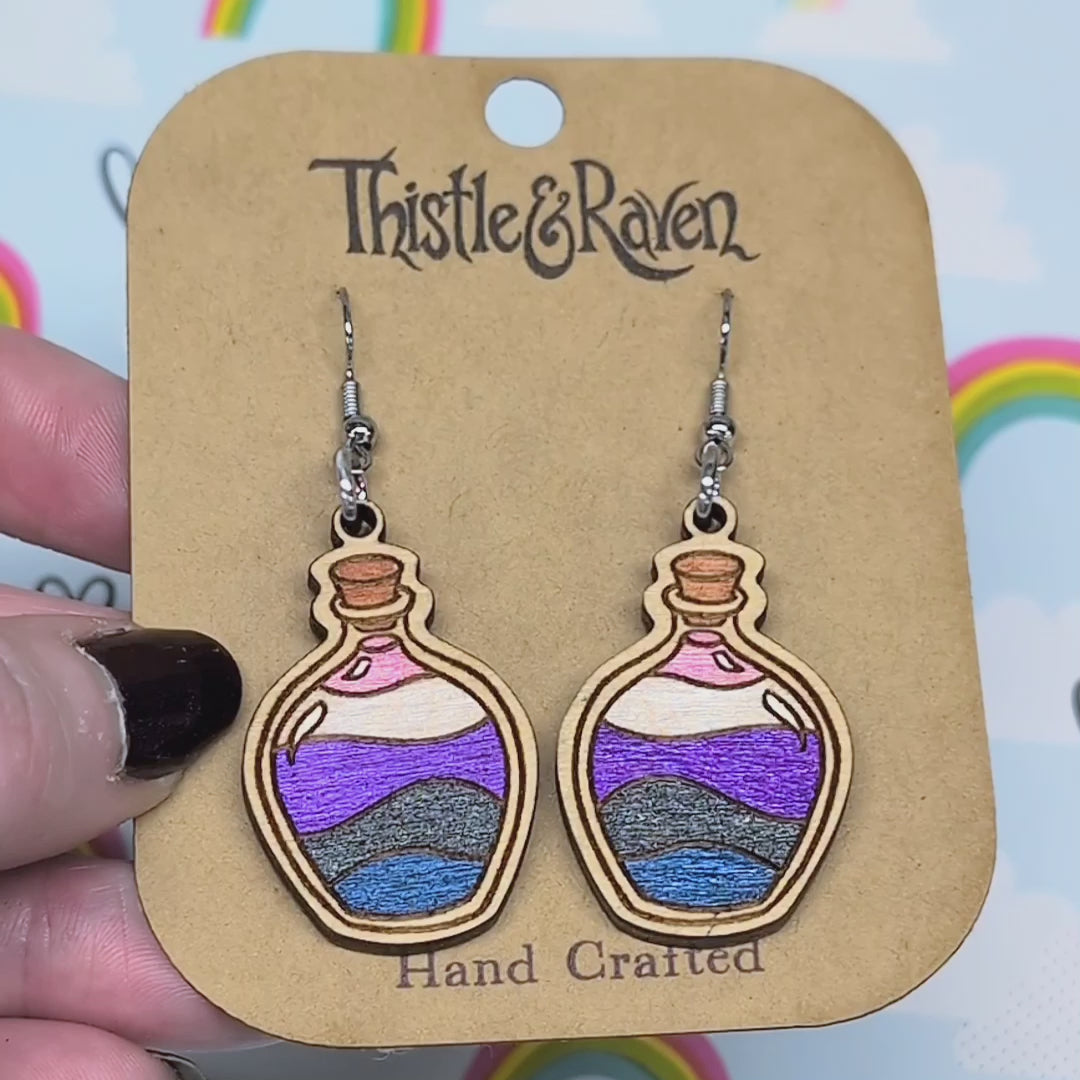 Laser Cut Wooden GENDERFLUID Pride Potion Bottle Earrings