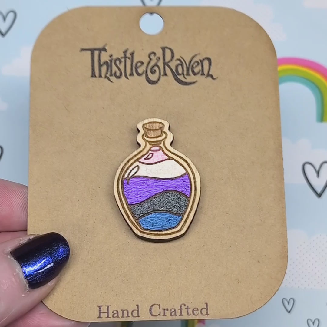 Laser Cut Wooden GENDERFLUID Pride Potion Bottle Pin