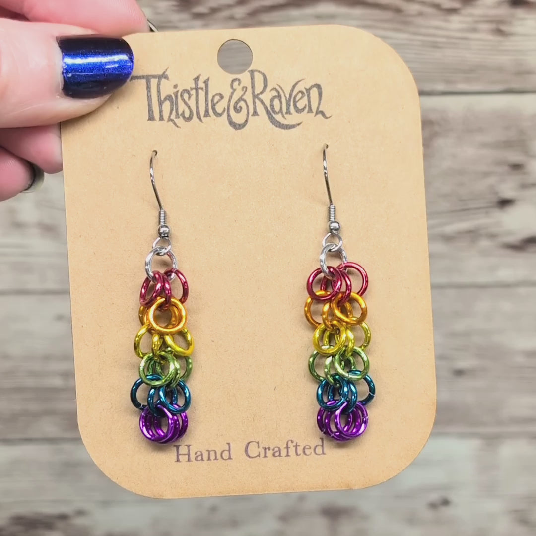 Celebrate Pride with these colorful earrings! These are the perfect way to show off your pride or support! These earrings are made by hand one ring at a time and are so lightweight that you won't even remember you are wearing them.