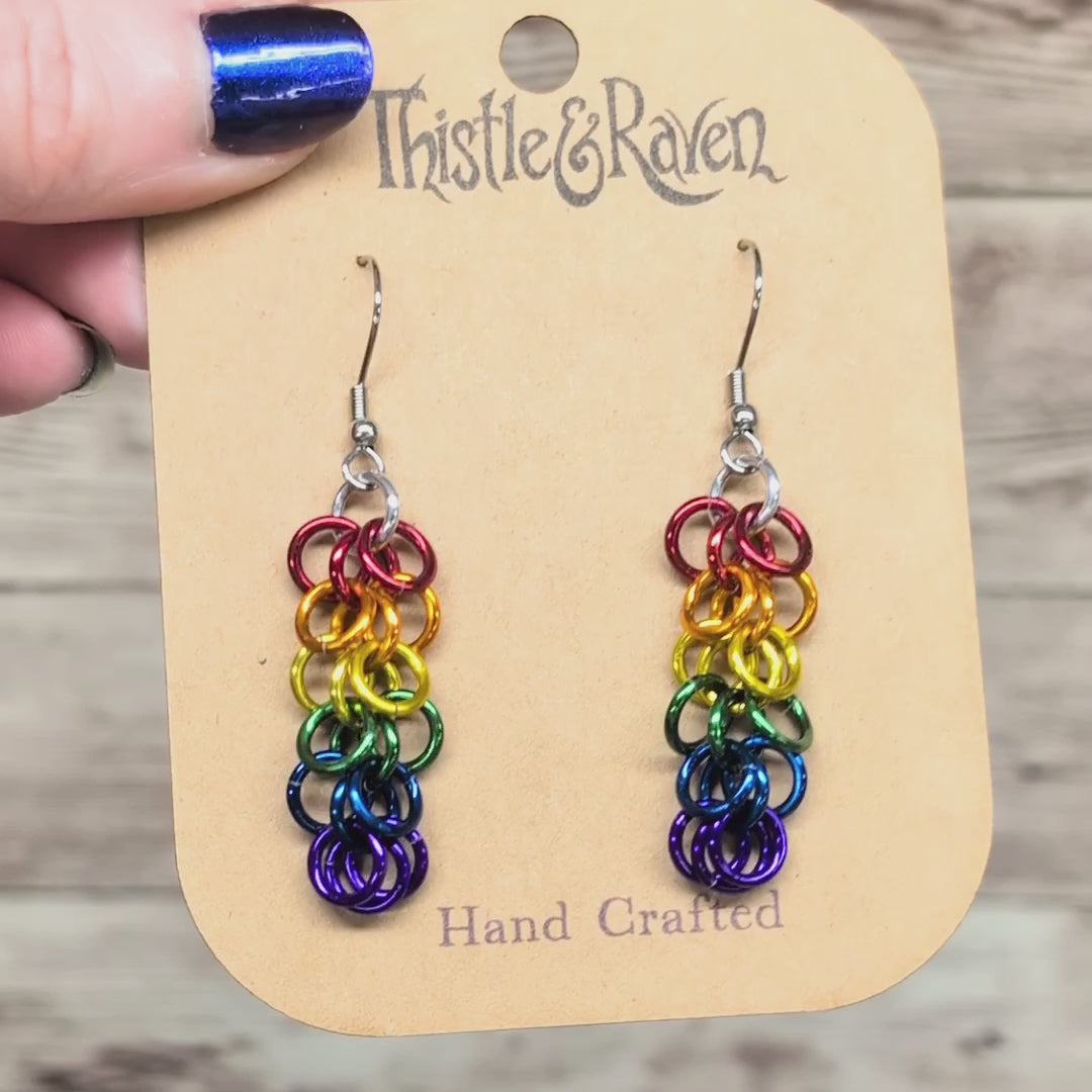 Celebrate Pride with these colorful earrings! These are the perfect way to show off your pride or support! These earrings are made by hand one ring at a time and are so lightweight that you won't even remember you are wearing them.